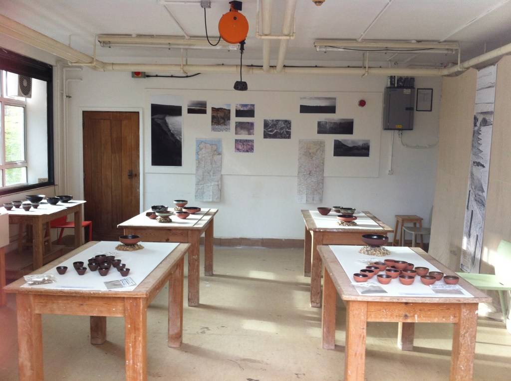 Stall at Bovey Tracey Contemporary Craft Festival, representing Bath Spa University, July 2016. Exhibiting work from my exploration of Clee Hill (Shropshire) and the testing and experimentation with the clays dug from this wild, open, much mutilated hill – the source of stone, coal and clay extraction over the centuries….