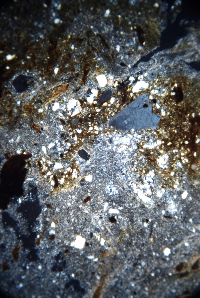 In 1984, I worked at The Museum of London as a volunteer, helping with post-excavation work and the back-catalogue of ceramic artefacts held in the museum stores under the careful supervision of Dr Paul Tyers. Part of the work involved preparing samples of Roman pottery for thin-section analysis, which involved cutting a small slice of ceramic from a shard, mounting it on a glass slide and then rubbing the ceramic down until it was the required thickness (a few microns as I remember). After this process, you could view the ceramic sample under a microscope, carefully illuminated with cross-polarised light for example, and the specific characteristics of the material would be presented to you: particles of quartz and other minerals, air spaces, the orientation of particles after being worked in a particular way…. This petrographic analysis has enabled archaeologists to determine the location of clay sources and the ceramics produced from them, thereby helping map out trade routes and connections between localities, regions, countries and continents….